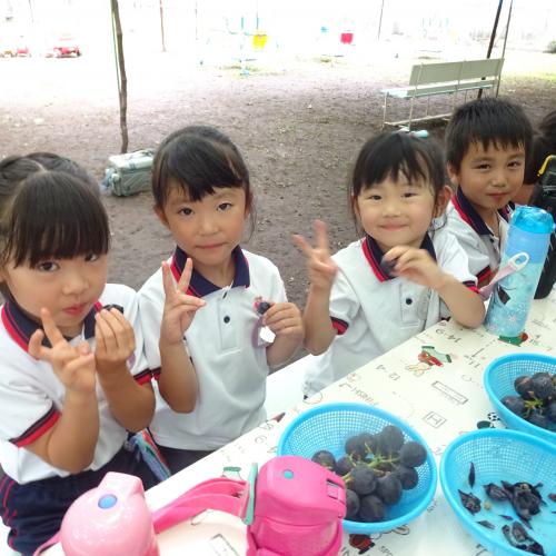 さて、今日は年中さんがぶどう狩ってきました。